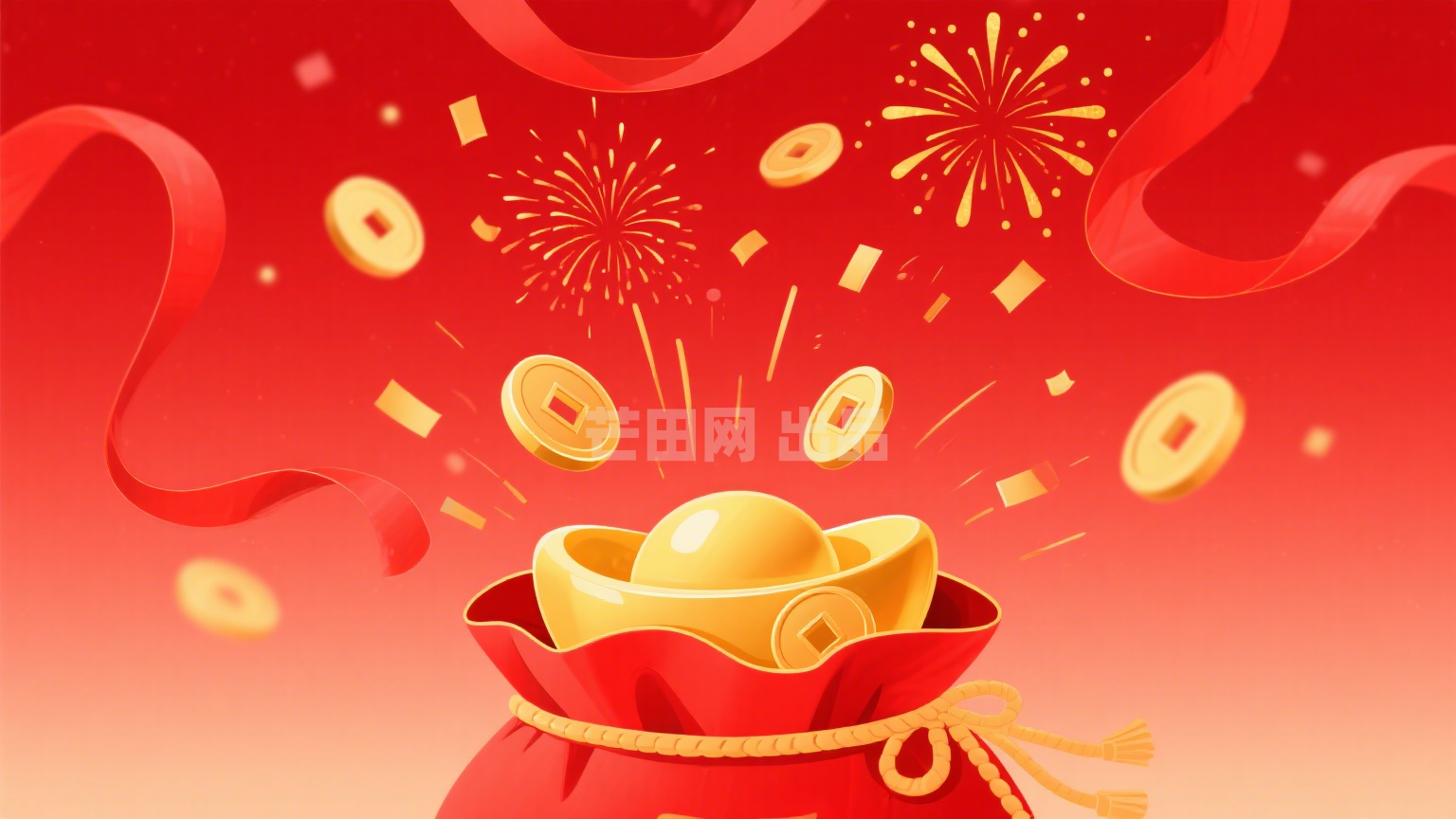 丝带福袋元宝烟花喜庆图