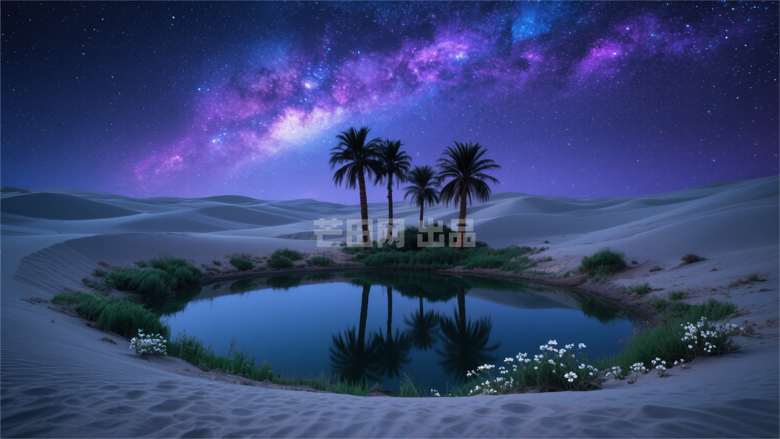 标签:星空,沙漠,绿洲,湖泊,银河,繁星,夜景,静谧
