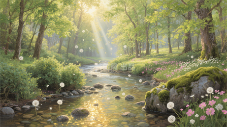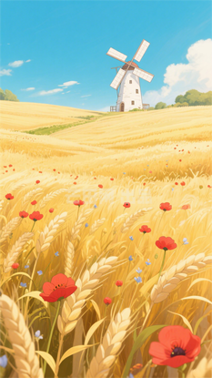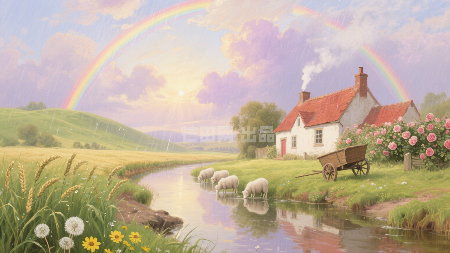 标签:彩虹,麦田,溪流,农舍,羊群,野花,炊烟,田园