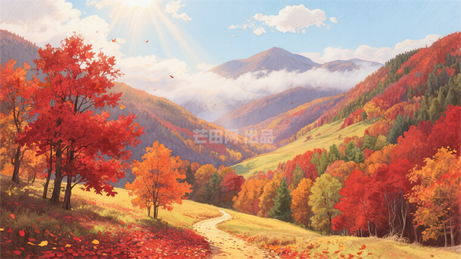 标签:枫叶,晨雾,光束,落叶,小径,秋林,诗意,梦幻