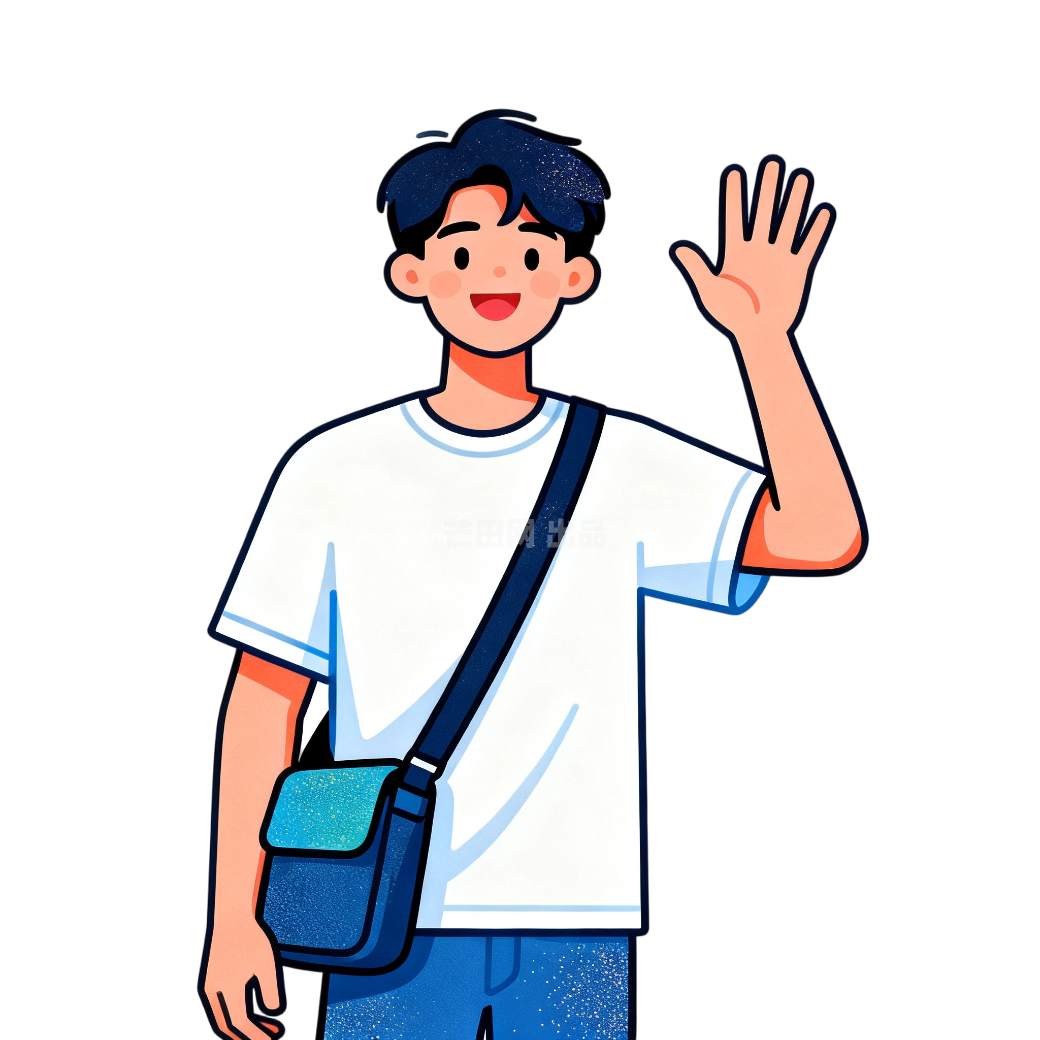 男性单肩挎包挥手告别