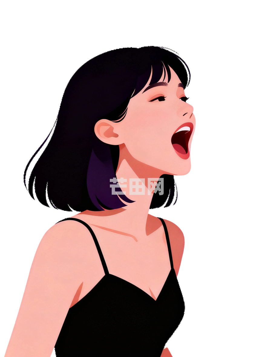 穿黑色吊带长发美女人女孩侧脸呐喊