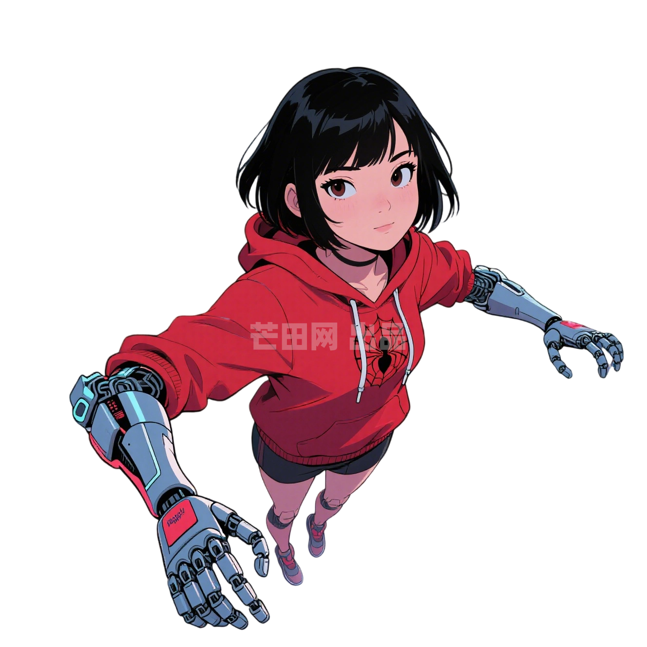 标签:赛博朋克,机械义肢,女性力量,悬浮,高饱和