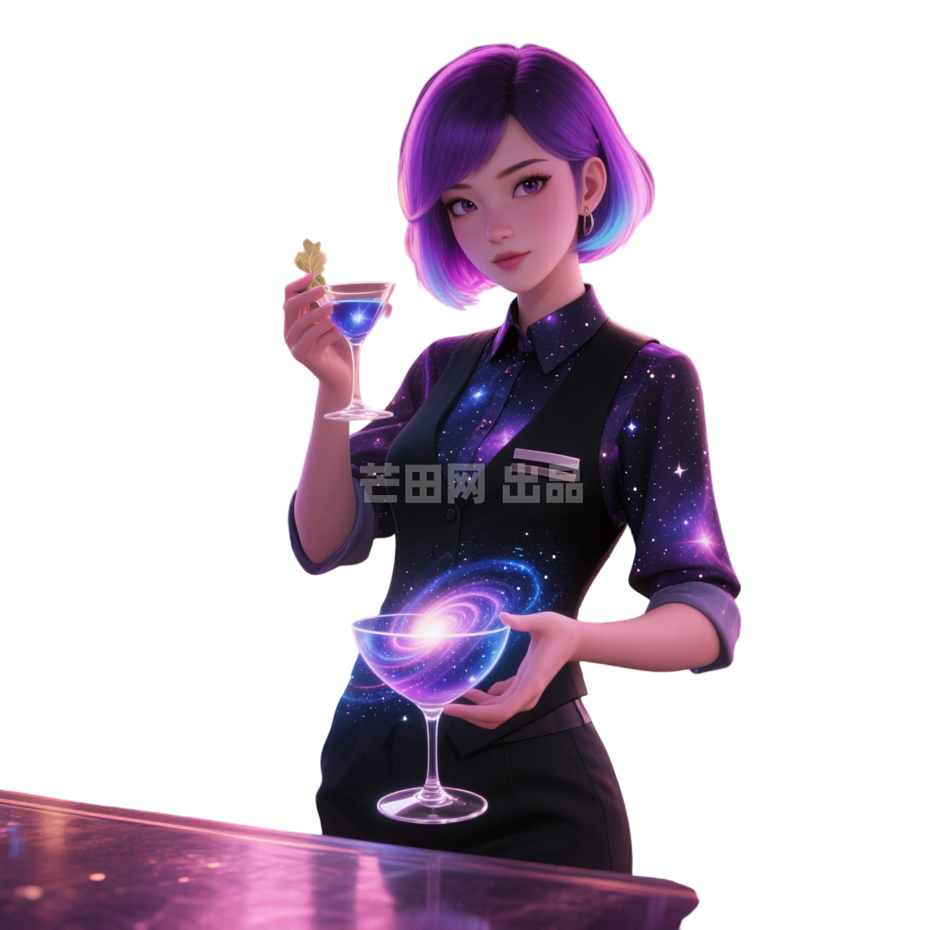 标签:调酒师,星云,发光酒瓶,星际酒吧