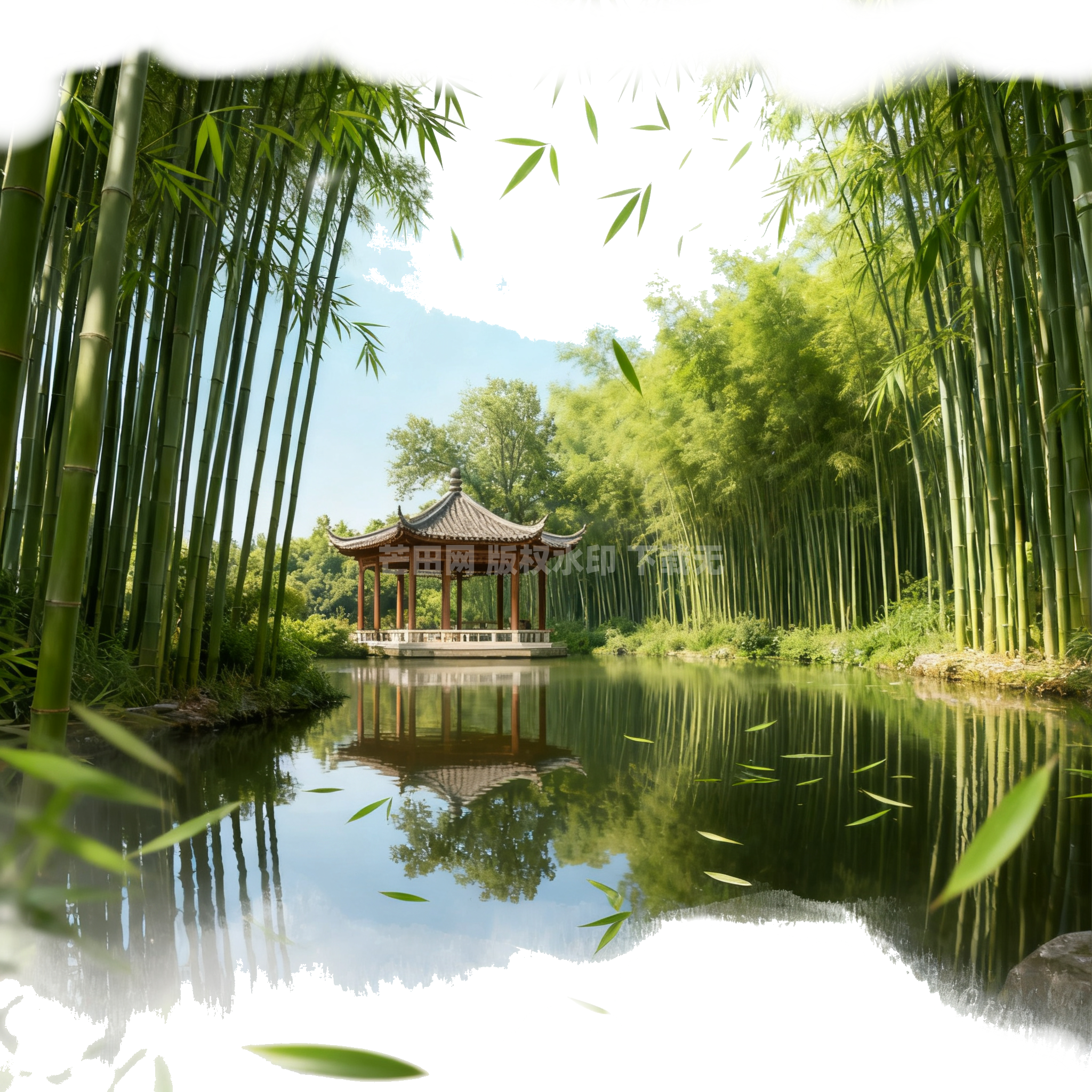 手撕竹乡江南水乡亭子池塘竹林-自然风景
