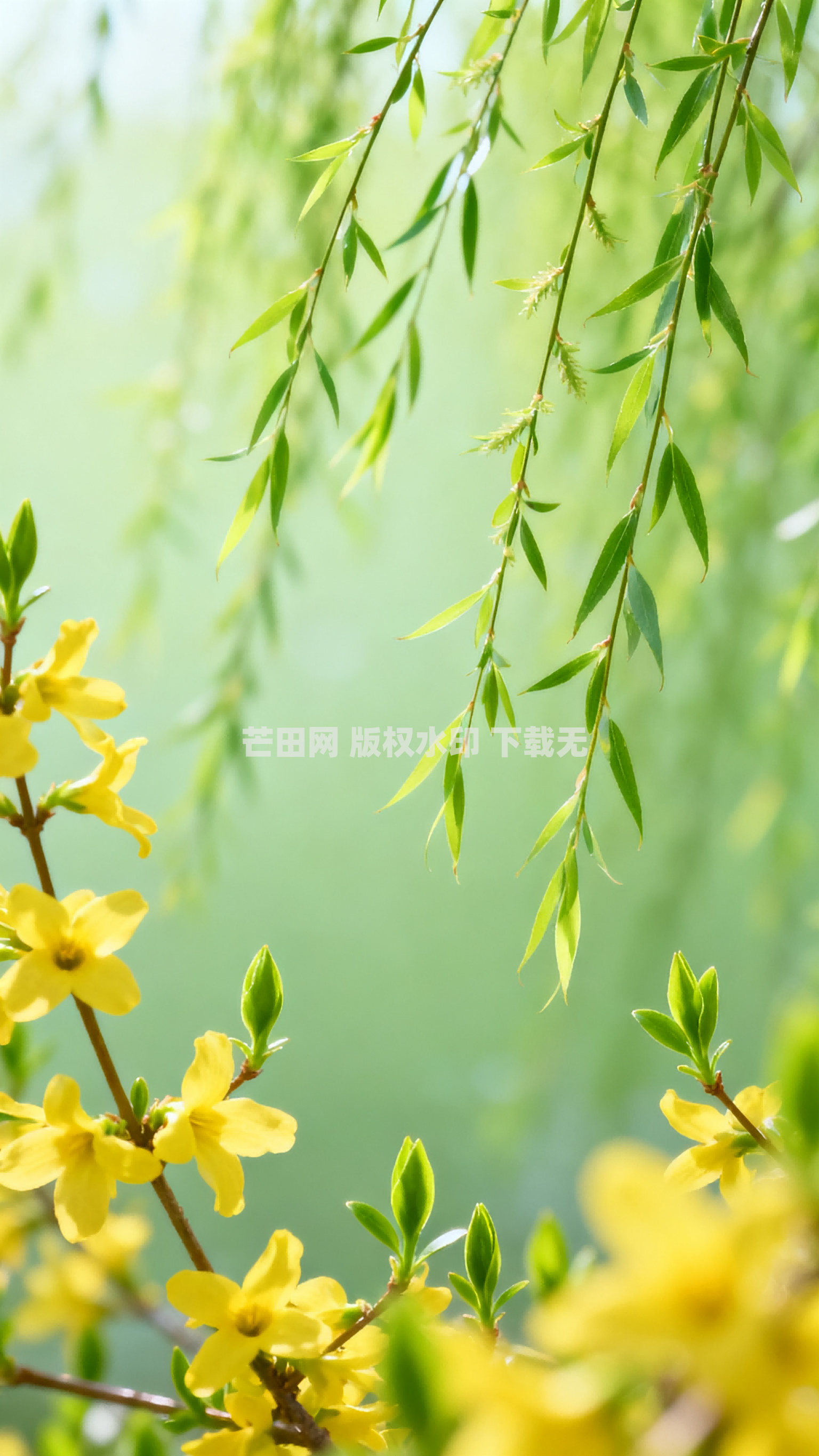杨柳黄花春季春日春天自然风景