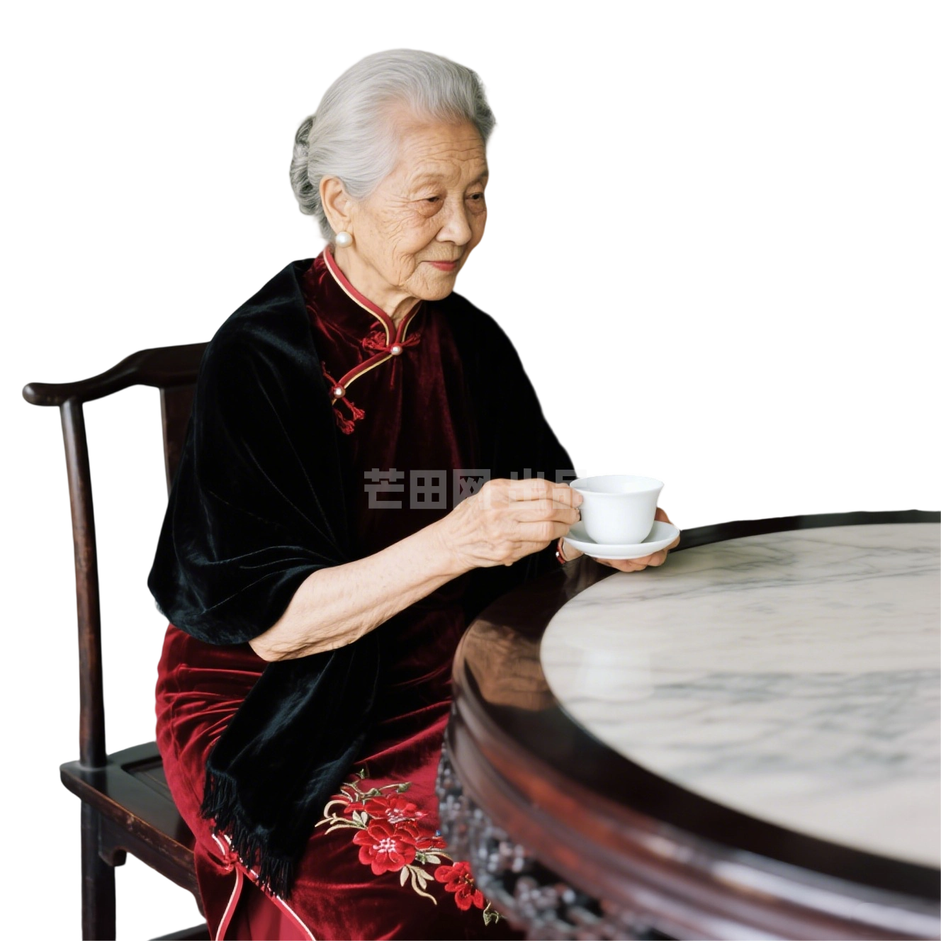标签:老人,老奶奶,丝绒旗袍,珍珠耳钉,白瓷杯,圆桌,发髻 说明:下载后无水印