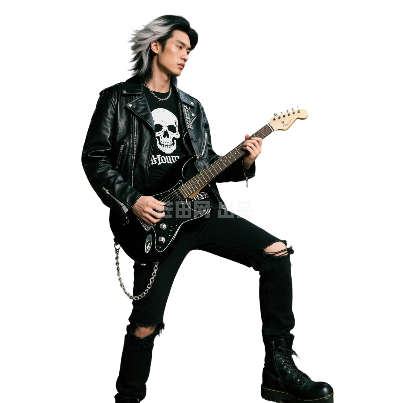 标签:帅哥,男人,皮夹克,马丁靴,狼尾头,电吉他,链条腰带 说明:下载后无水印