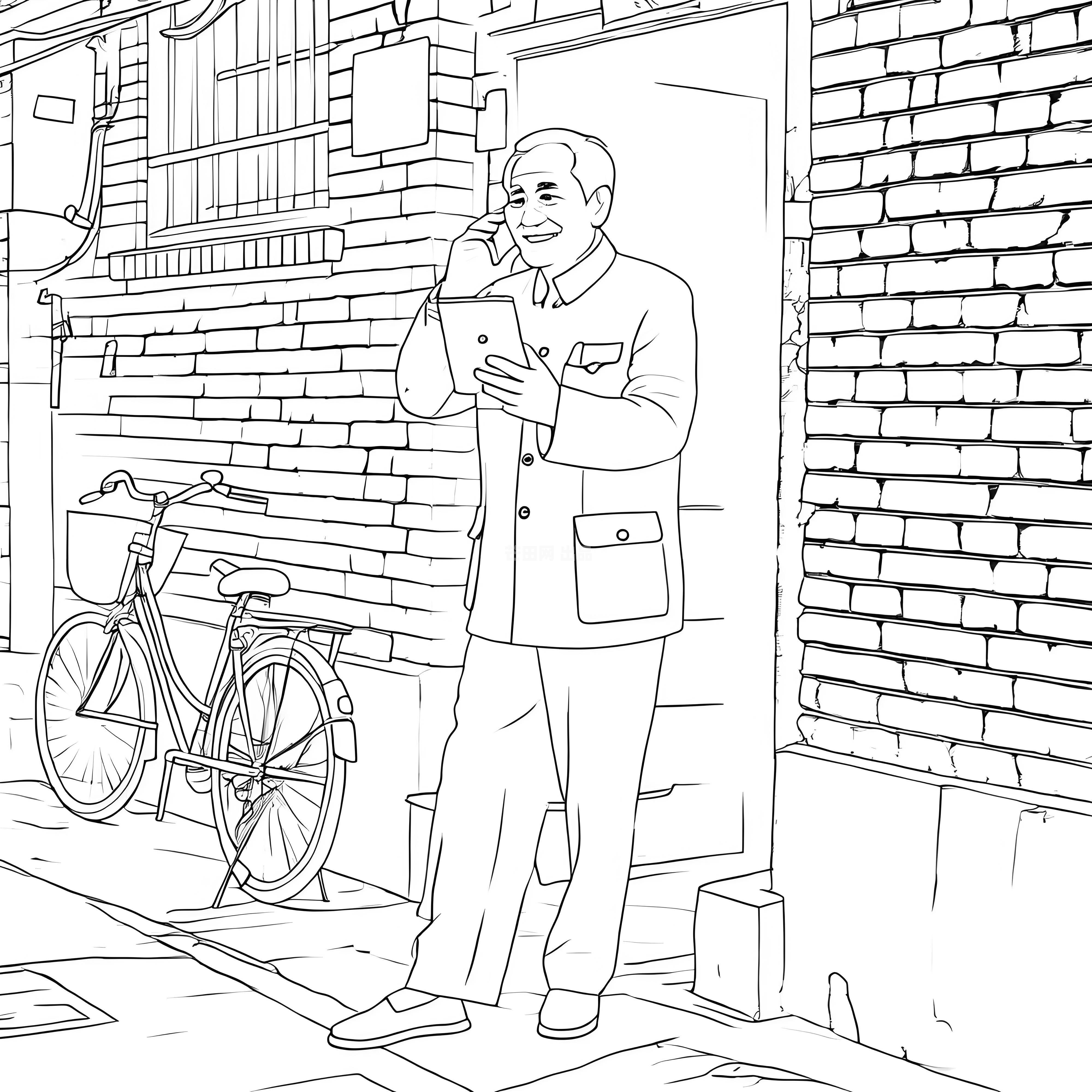 标签:中山装,平板电脑,红砖墙,共享单车,老北京