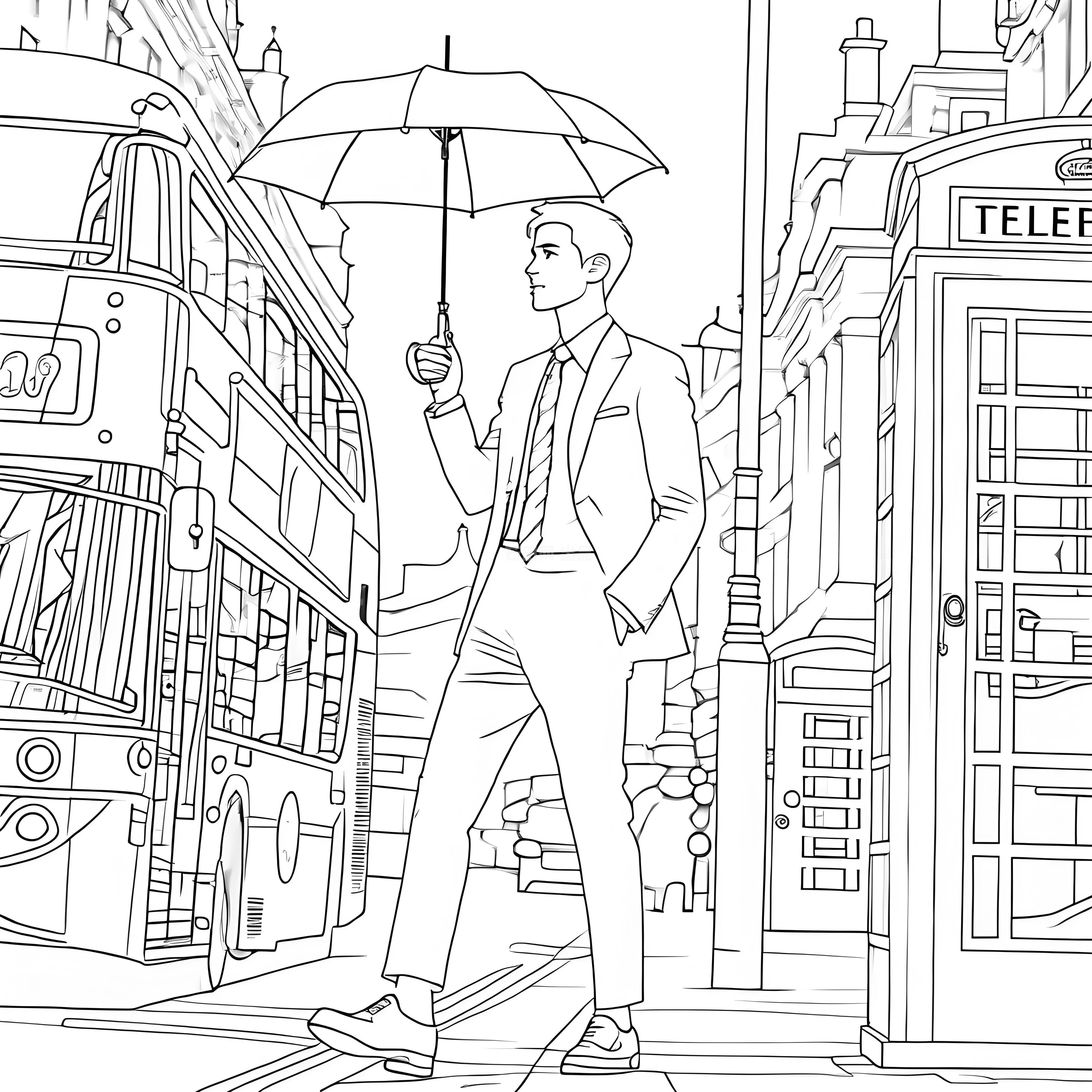标签:藏青西装,牛津鞋,侧分短发,红色巴士,欧式建筑 说明:下载后无水印