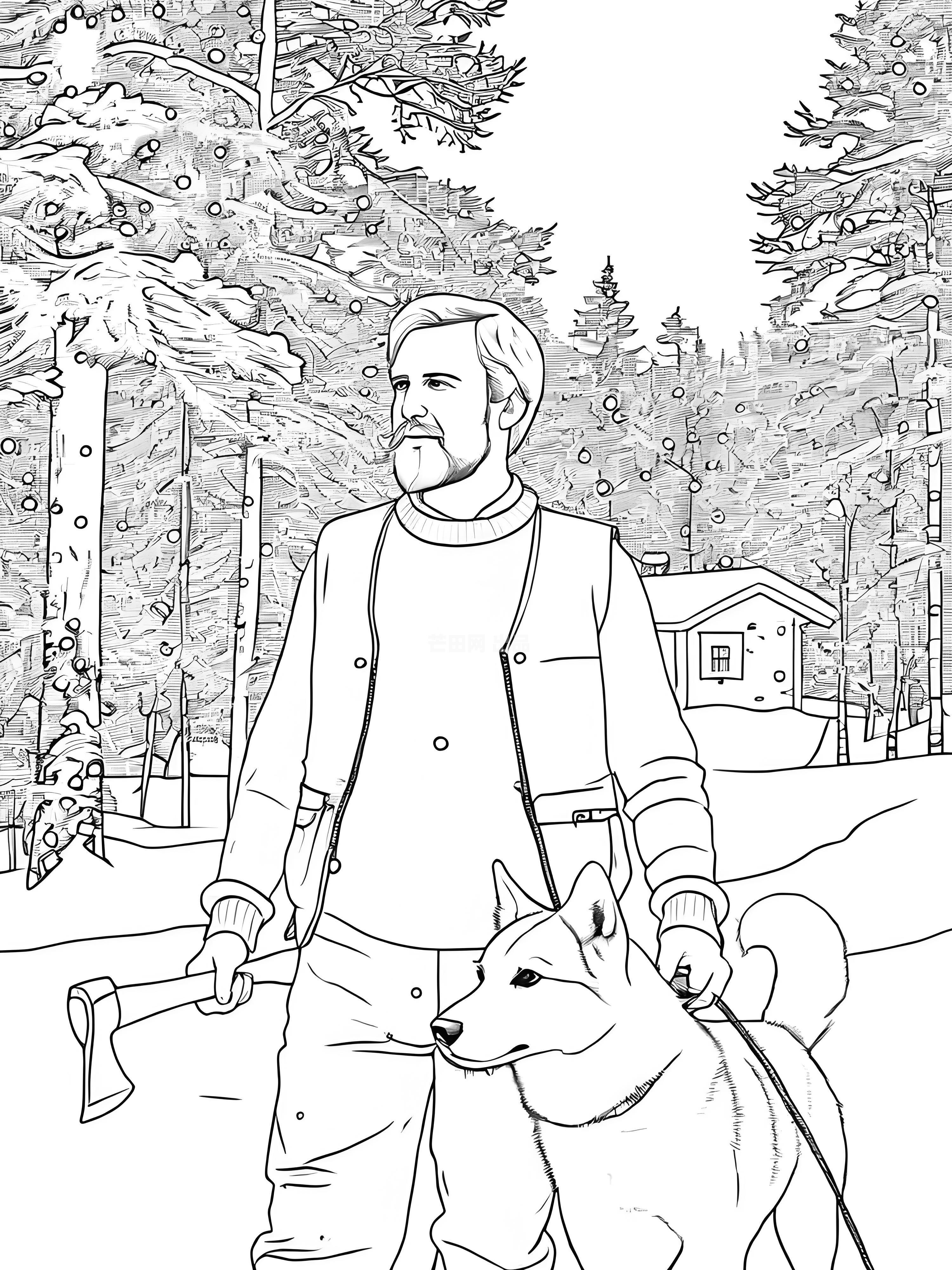 北欧雪林里的伐木人与雪橇犬