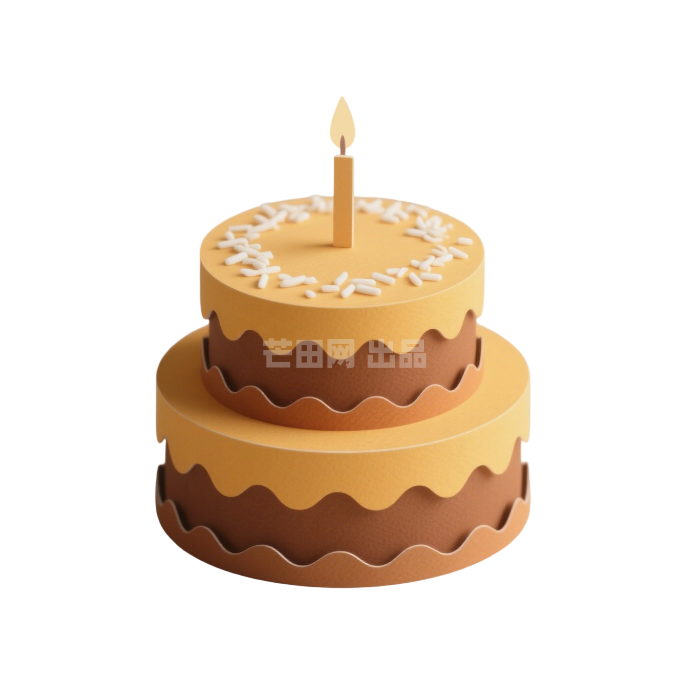 棕黄渐变三层蛋糕体小蛋糕蜡烛
