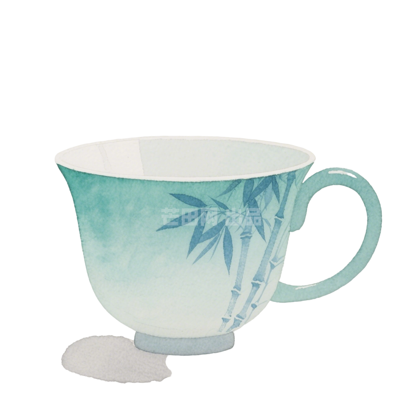 标签:圆口鼓腹,水墨竹叶,环形杯柄,浅灰阴影,器皿元素 说明:下载后无水印