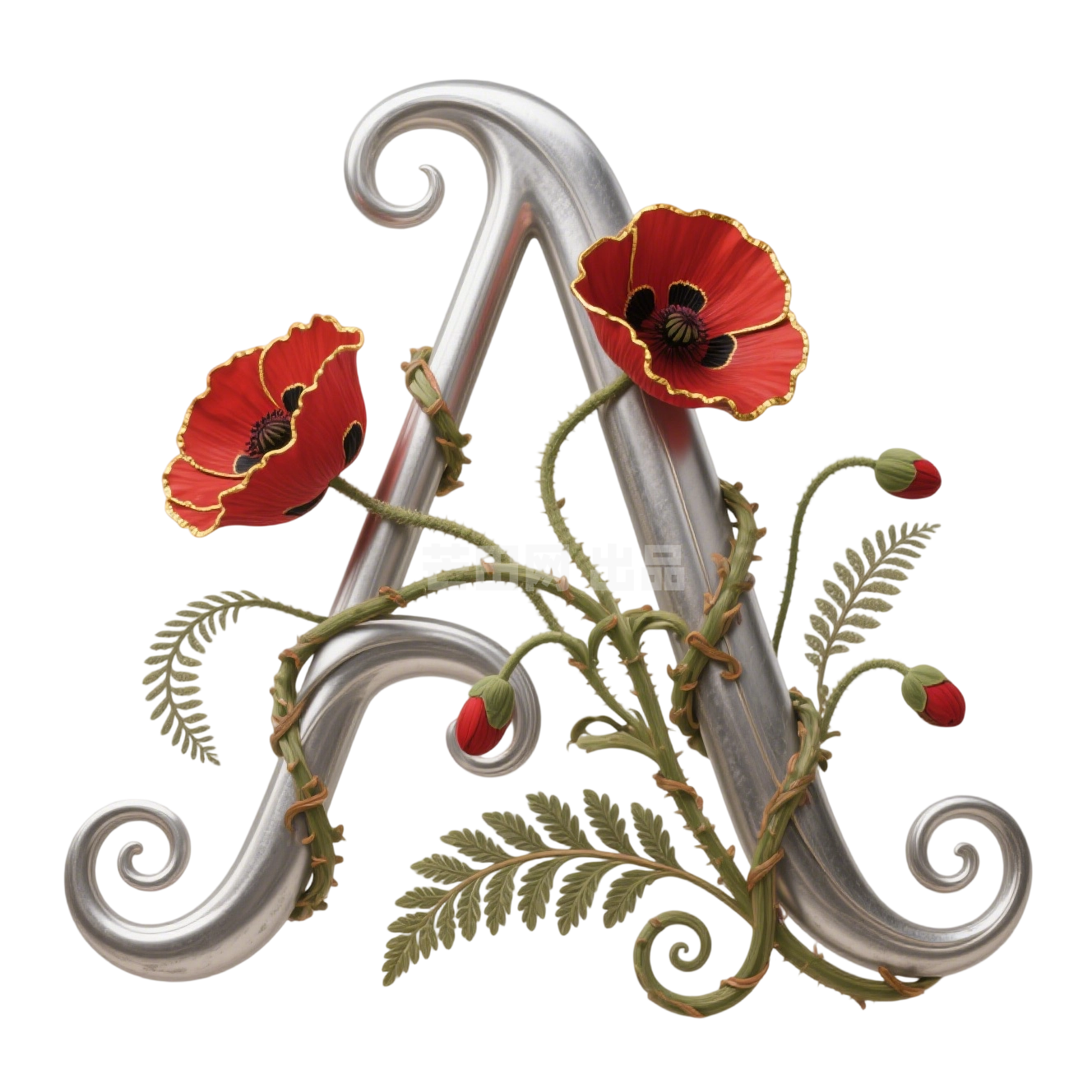藤蔓缠绕曲线蕨类叶片字母A