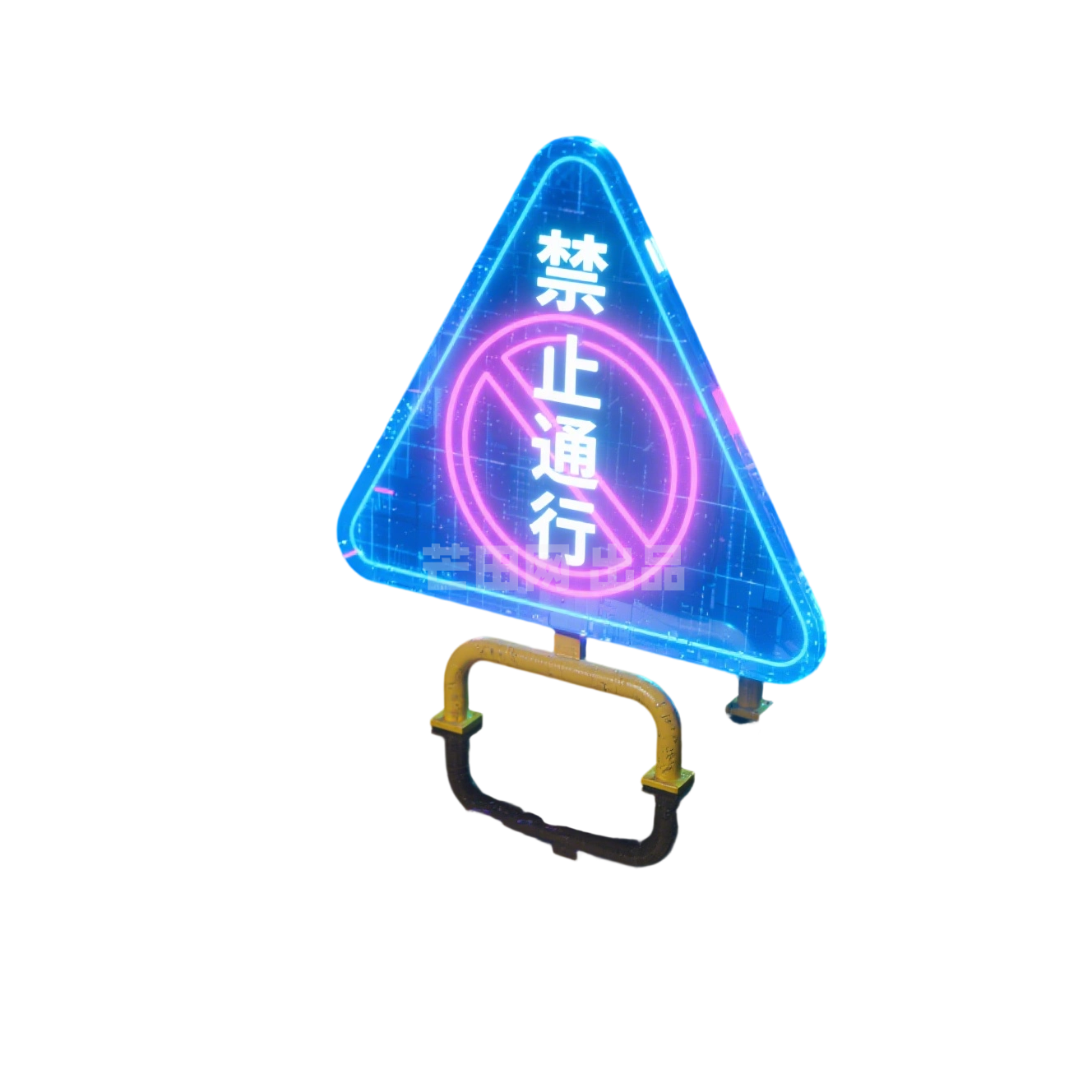全息粉色霓虹描边交通路标