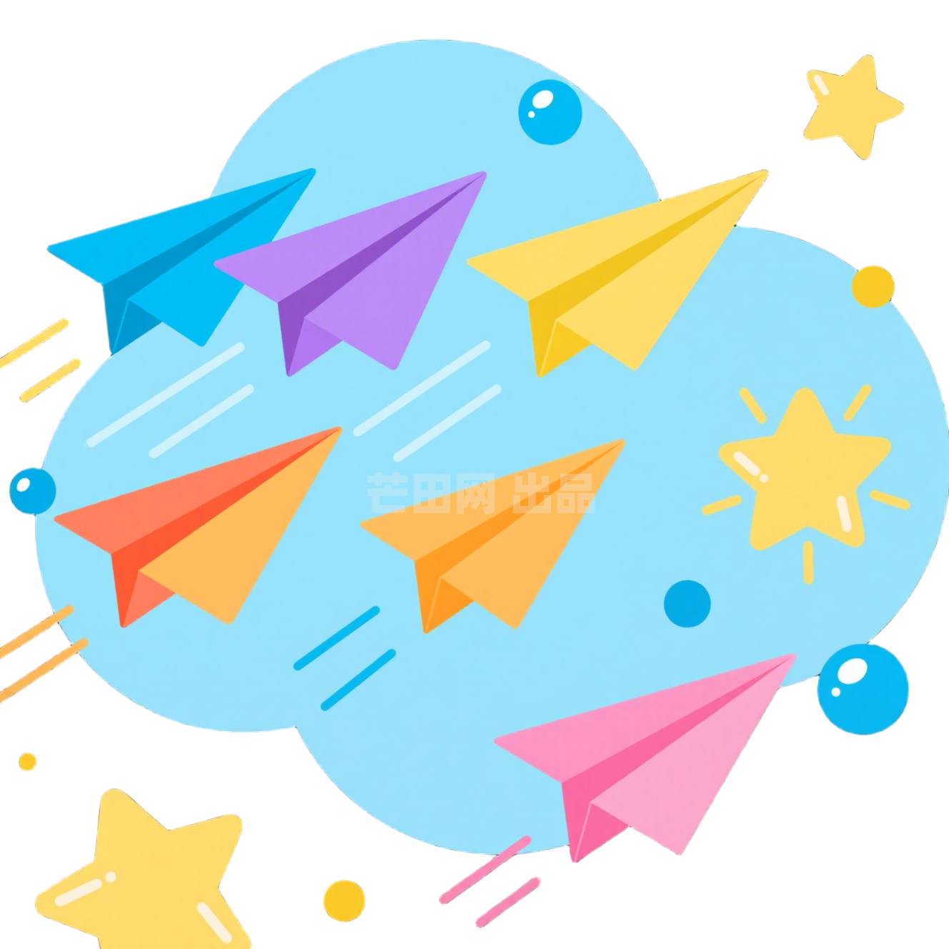 卡通可爱纸飞机飞向蓝天白云装饰插画