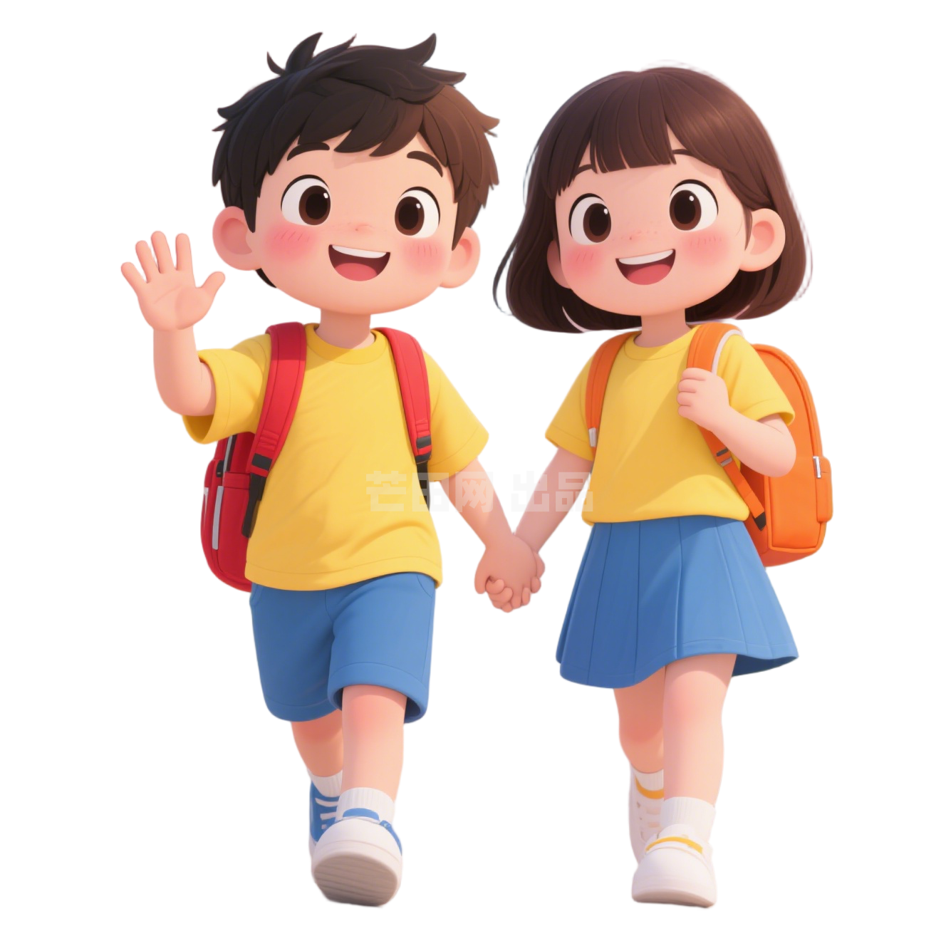 男孩女孩背书包上学
