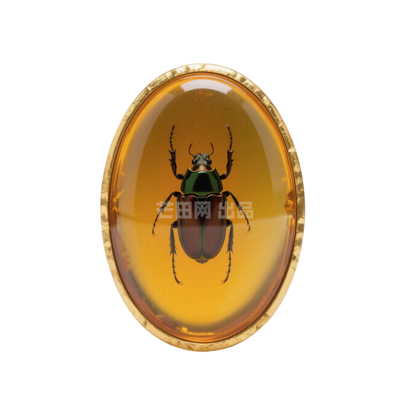 标签:树脂,昆虫标本,琥珀色,透明,金色包边