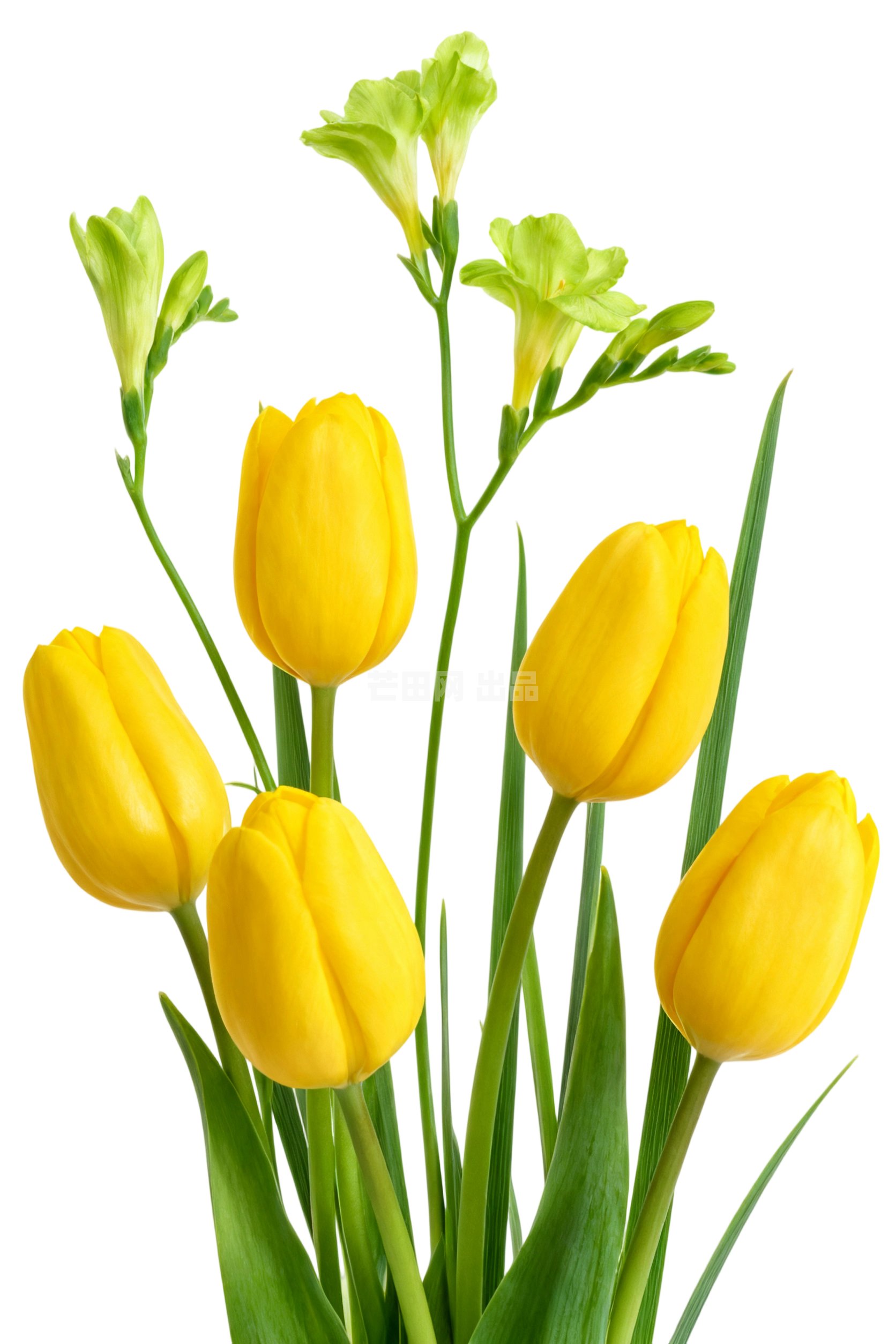 黄色郁金香与绿色小苍兰