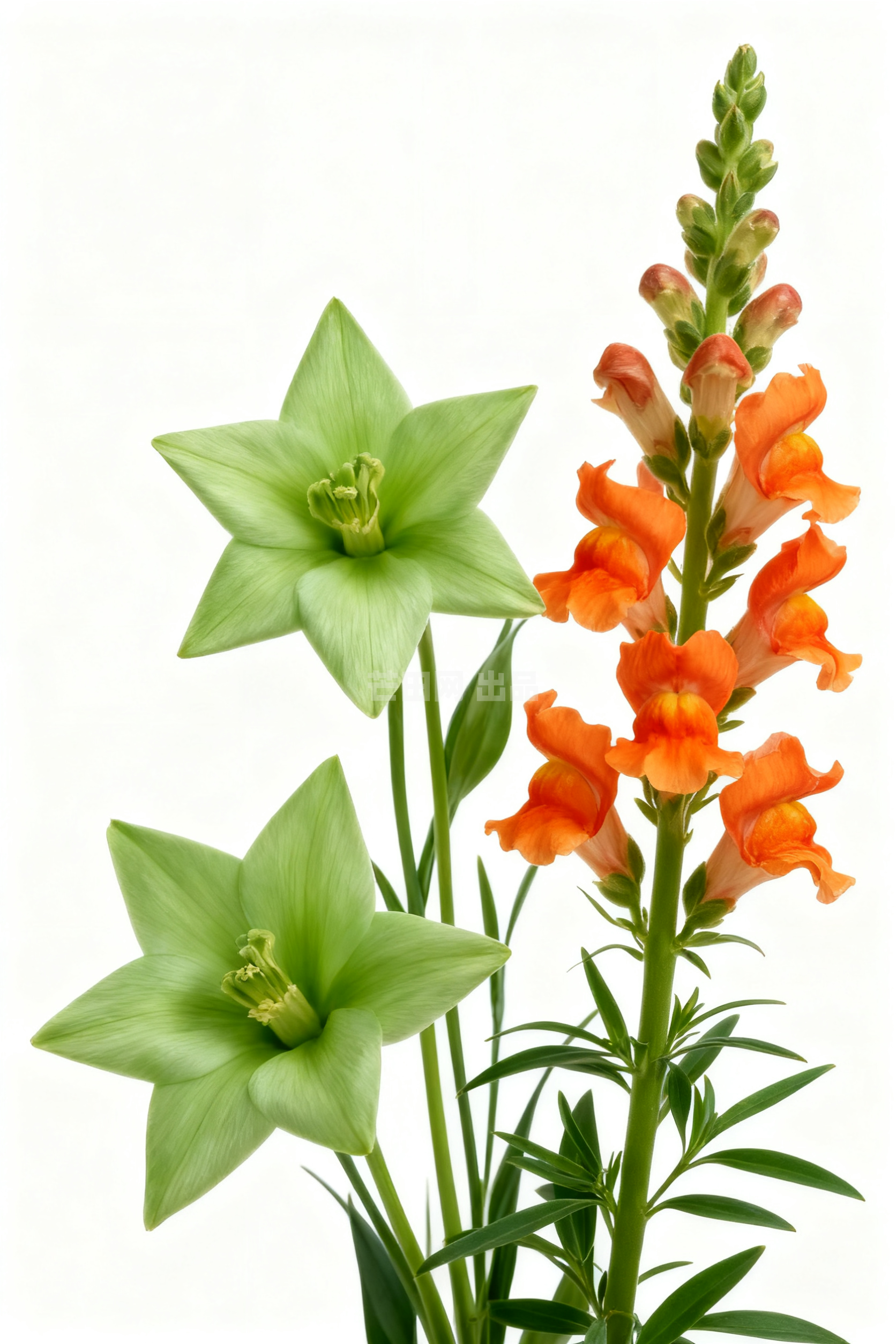 绿色洋桔梗与橙色金鱼草